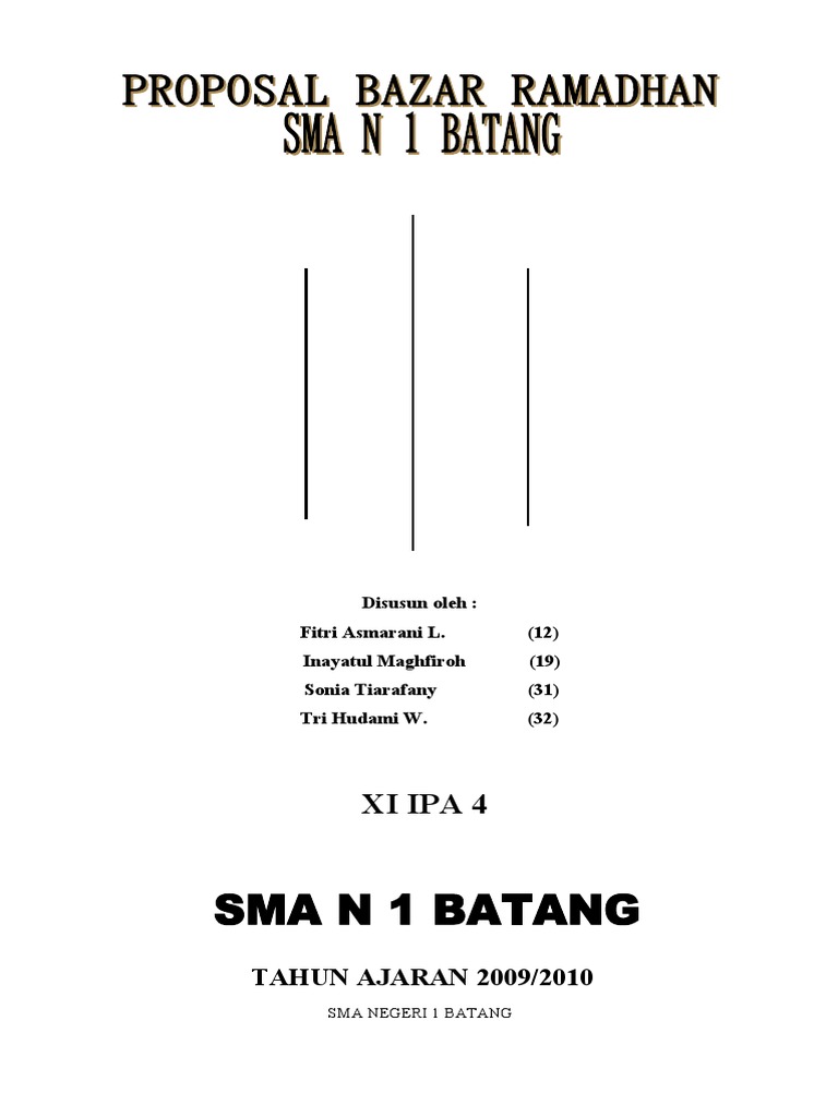 Sma n 1 batang i. Tak lupa semoga allah meridhoi dan memudahkan jalannya kegiatan ini serta menjadikannya sebagai nilai ibadah, atas segala partispasi dan bantuannya. Berdasarkan hal tersebut kami menyampaikan laporan kegiatan bazar kewirausahaan untuk memperjelas dan melaporkan hasil dari kegiatan yang telah dilaksanakan. Sungai rengas, 25 januari 2013. Proposal ini harus dibuat jauh sebelum kegiatan tersebut.